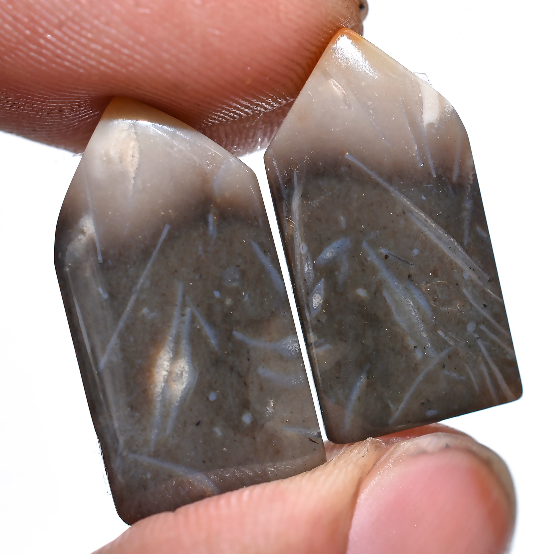 Shop Palm Root agate pair cabochons, perfectly matched for earring designs. Ideal for custom jewelry projects, offering natural, unique gemstones.