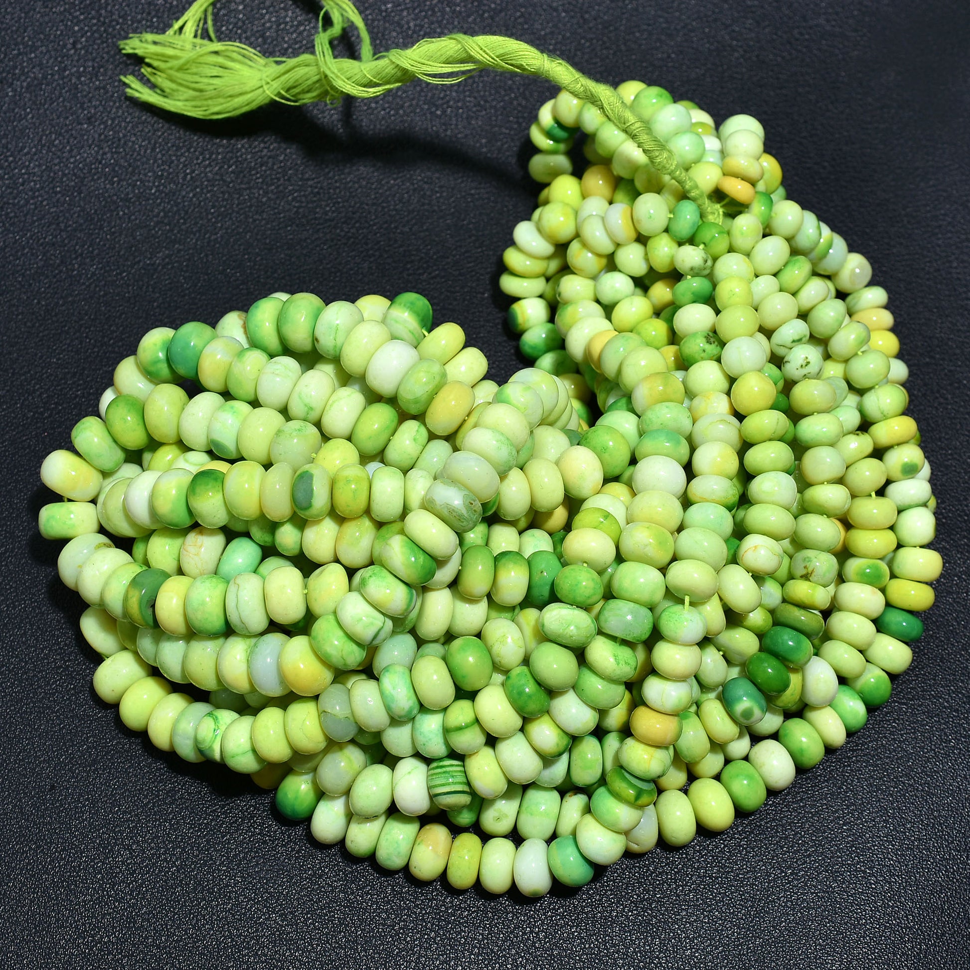 Shop 16 inch strands of Parrot Green Opal Rondelle Gemstone Beads. Perfect for DIY jewelry making, wholesale crafting, and handmade accessories.