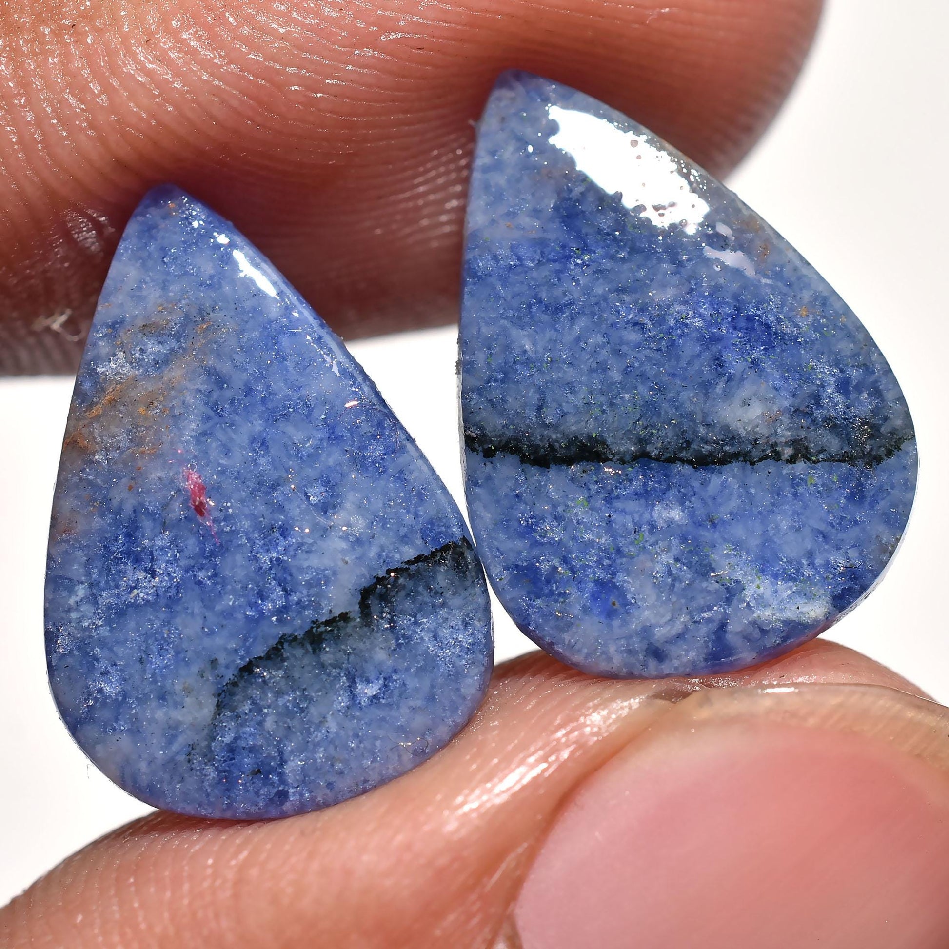 Pear Shaped Sodalite Pair Cabochon, Natural Smooth Matched Pair, Loose Polished Jewelry Making Crystal, Flat Back Stone For Earrings