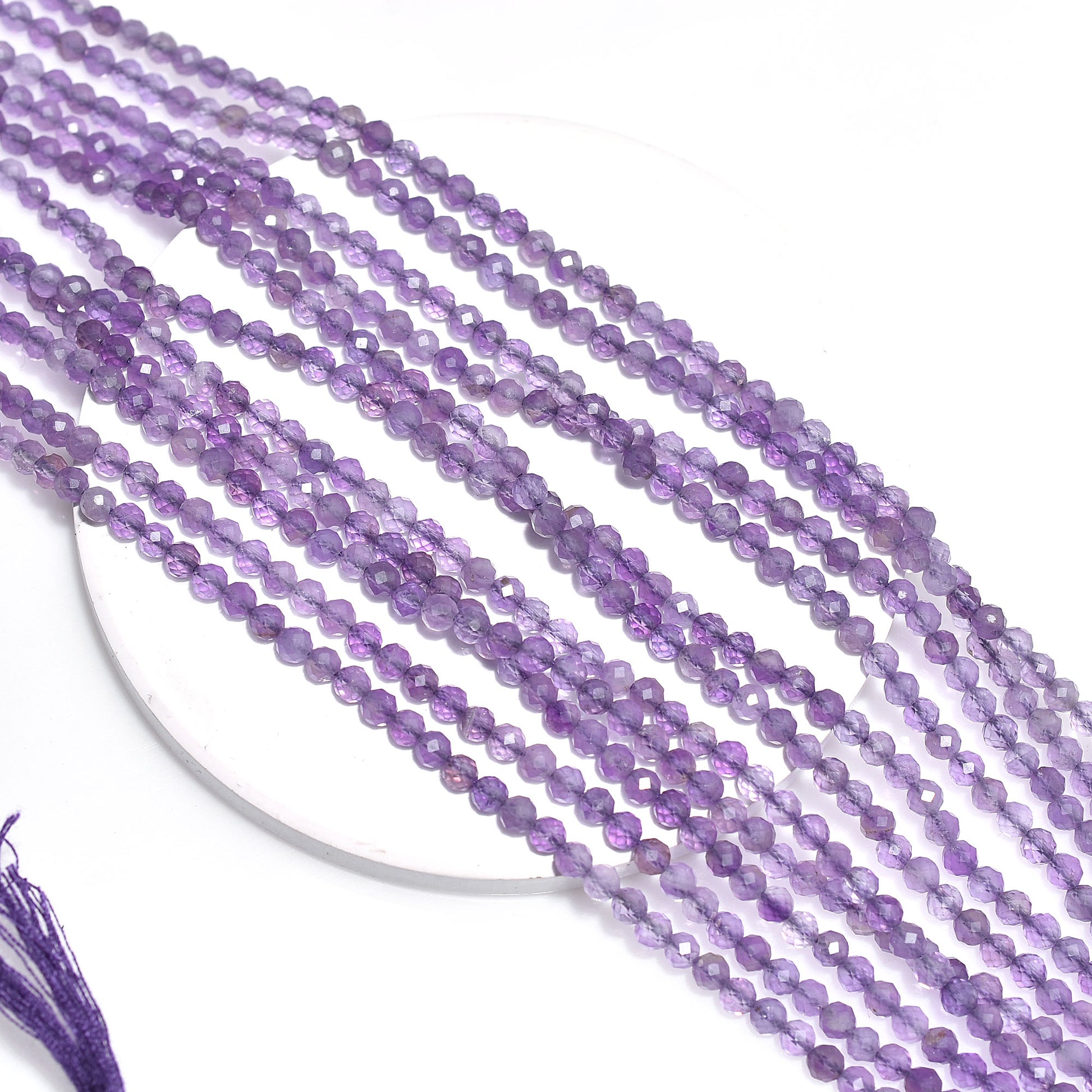 Purple Amethyst Micro Beads – Machine Cut Faceted Gemstone Strand