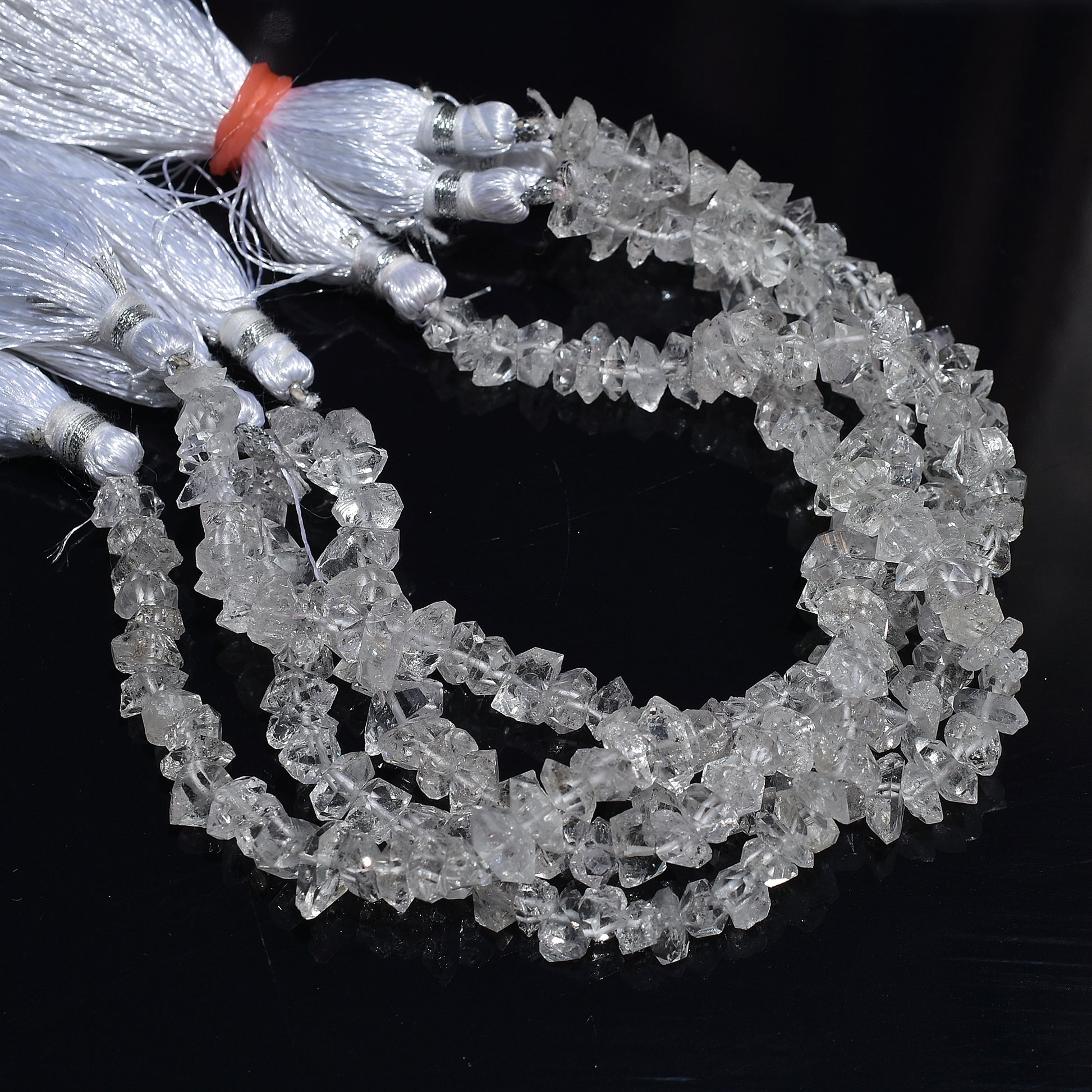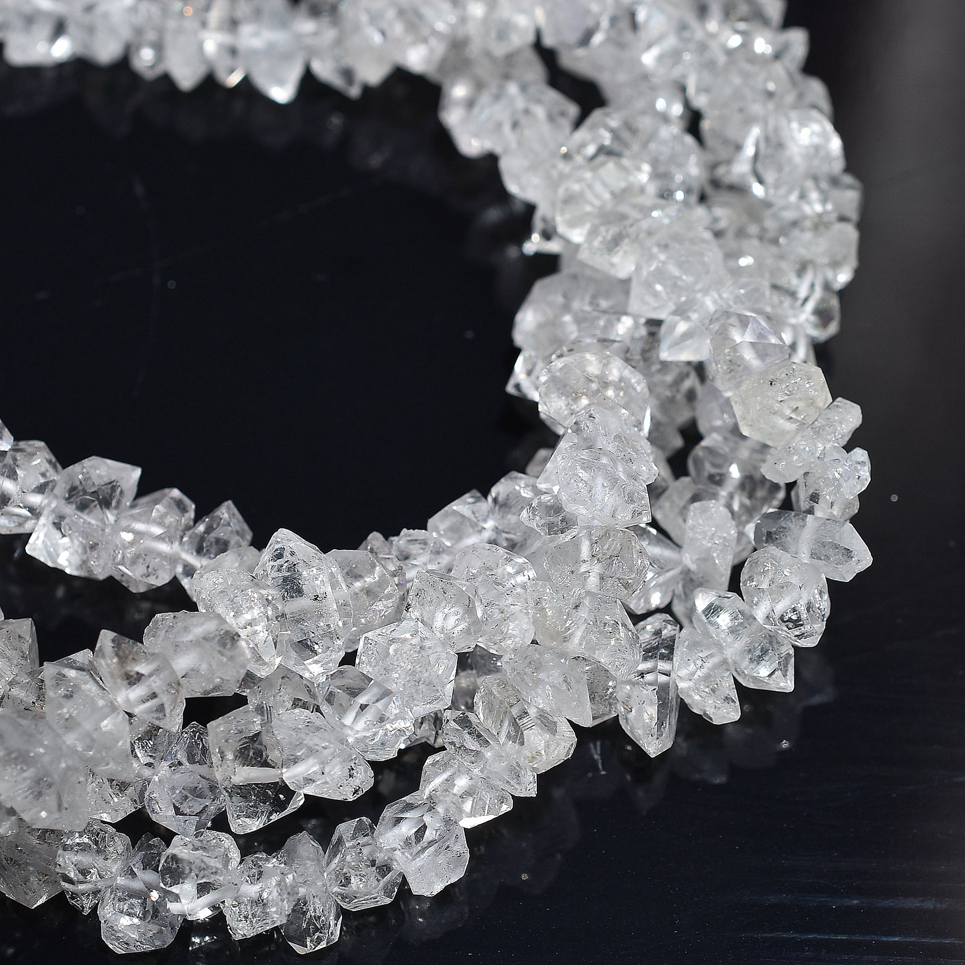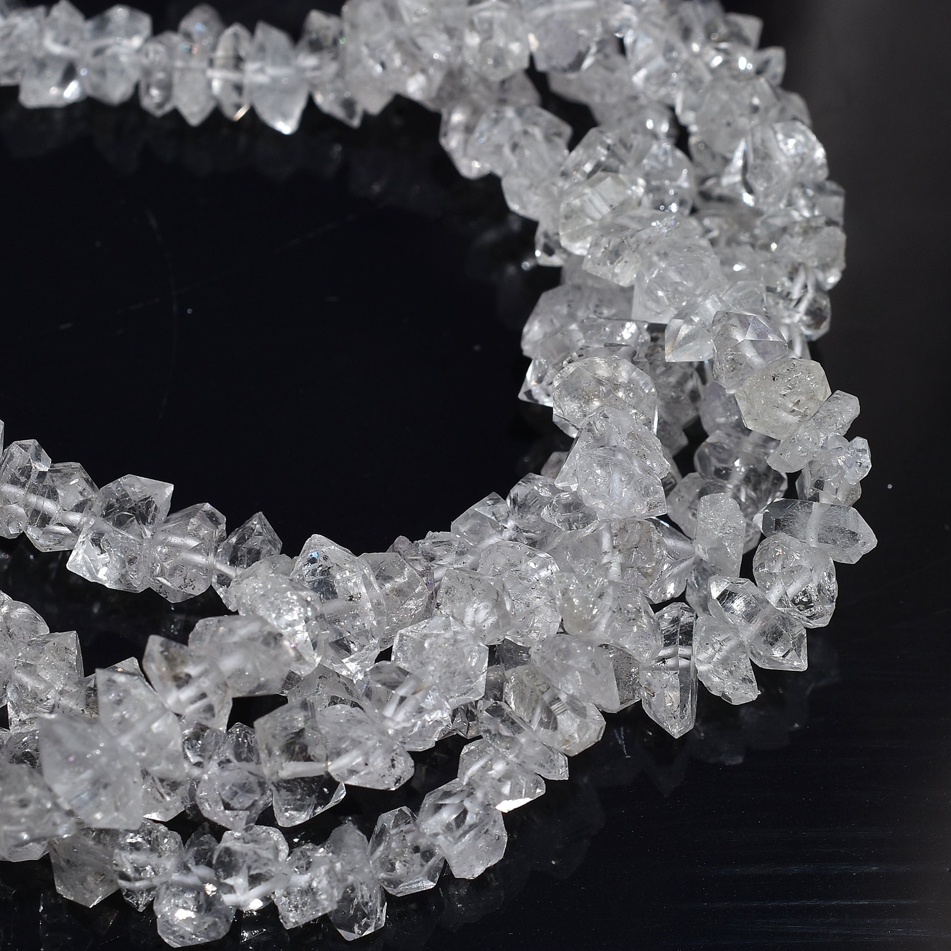 Bring raw brilliance to your jewelry designs with this Herkimer Diamond Uncut Beads Strand. These natural double-terminated quartz crystals sparkle with high clarity and organic charm. Perfect for boho, spiritual, or minimalist jewelry pieces. Each 16-inch strand is full of unique, unpolished beauty for necklaces, bracelets, and healing accessories.