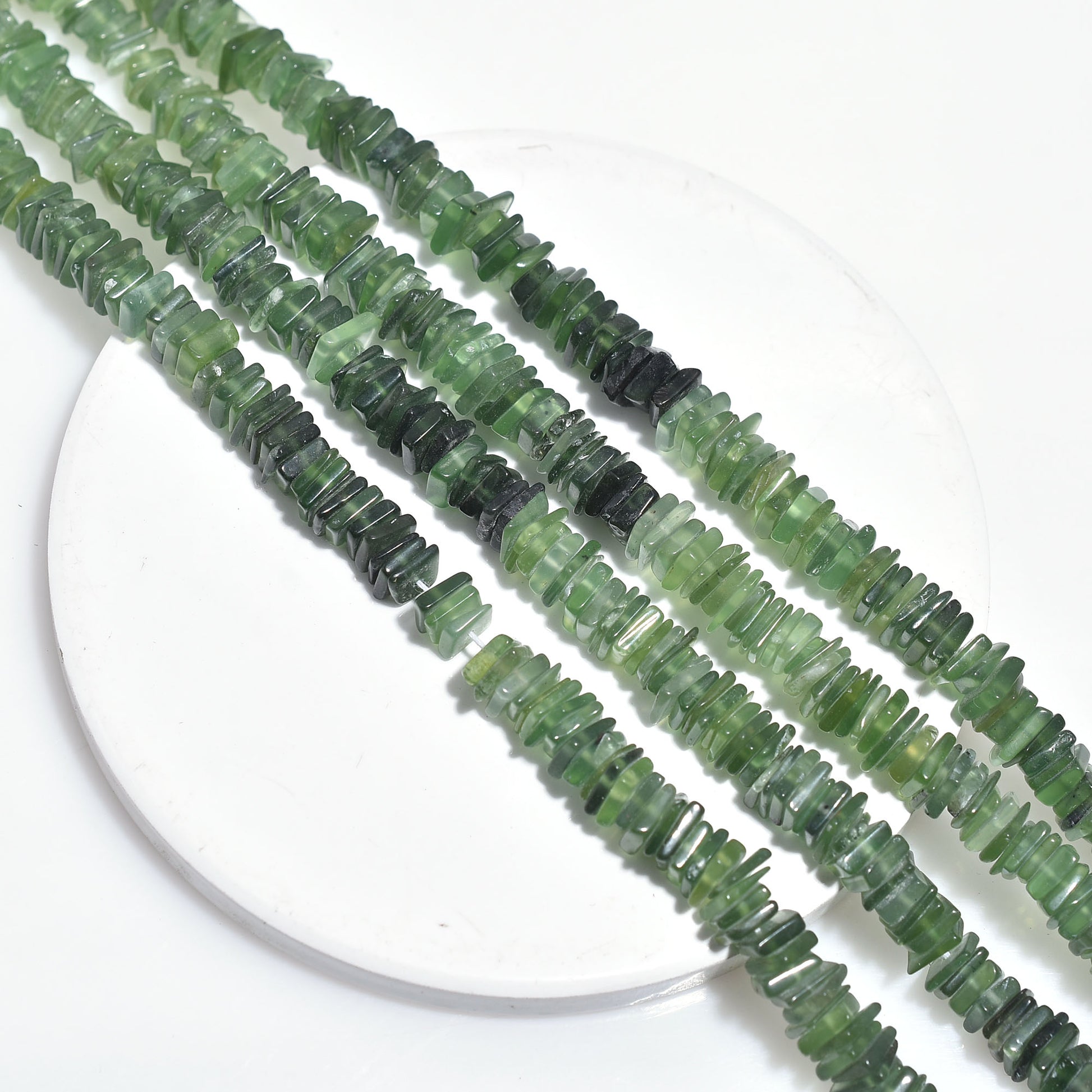 Serpentine Heishi Beads Strand – Green Square Flat Gemstones