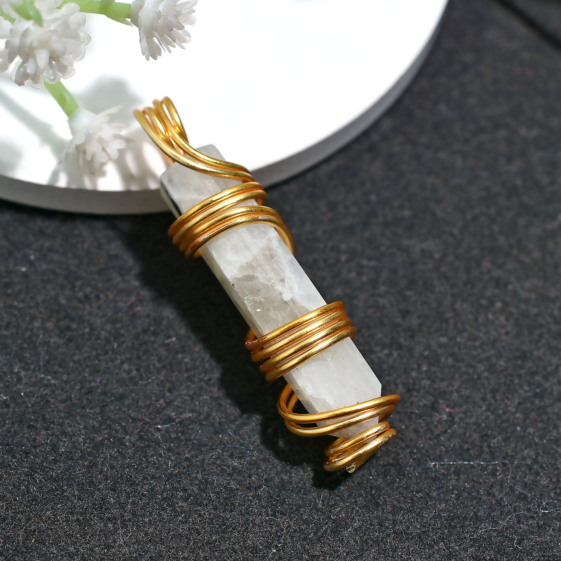 Golden Wire Wrapped Rainbow Moonstone Pencil Pendant – Wholesale Healing Crystal Jewelry
