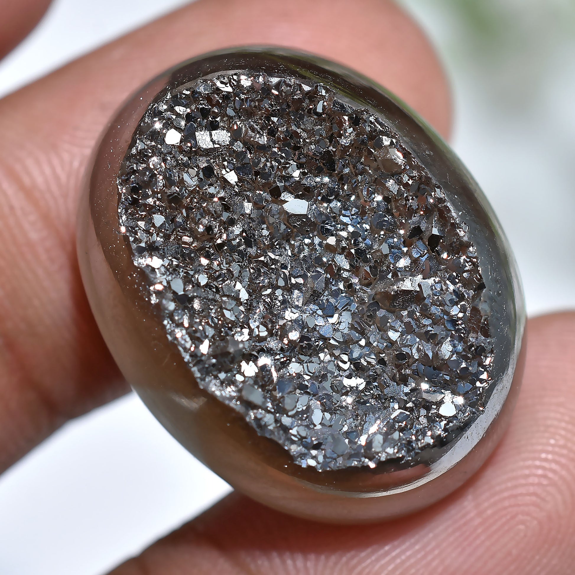Silver Titanium Druzy Cabochon - Titanium Coated Druzy Loose Stone