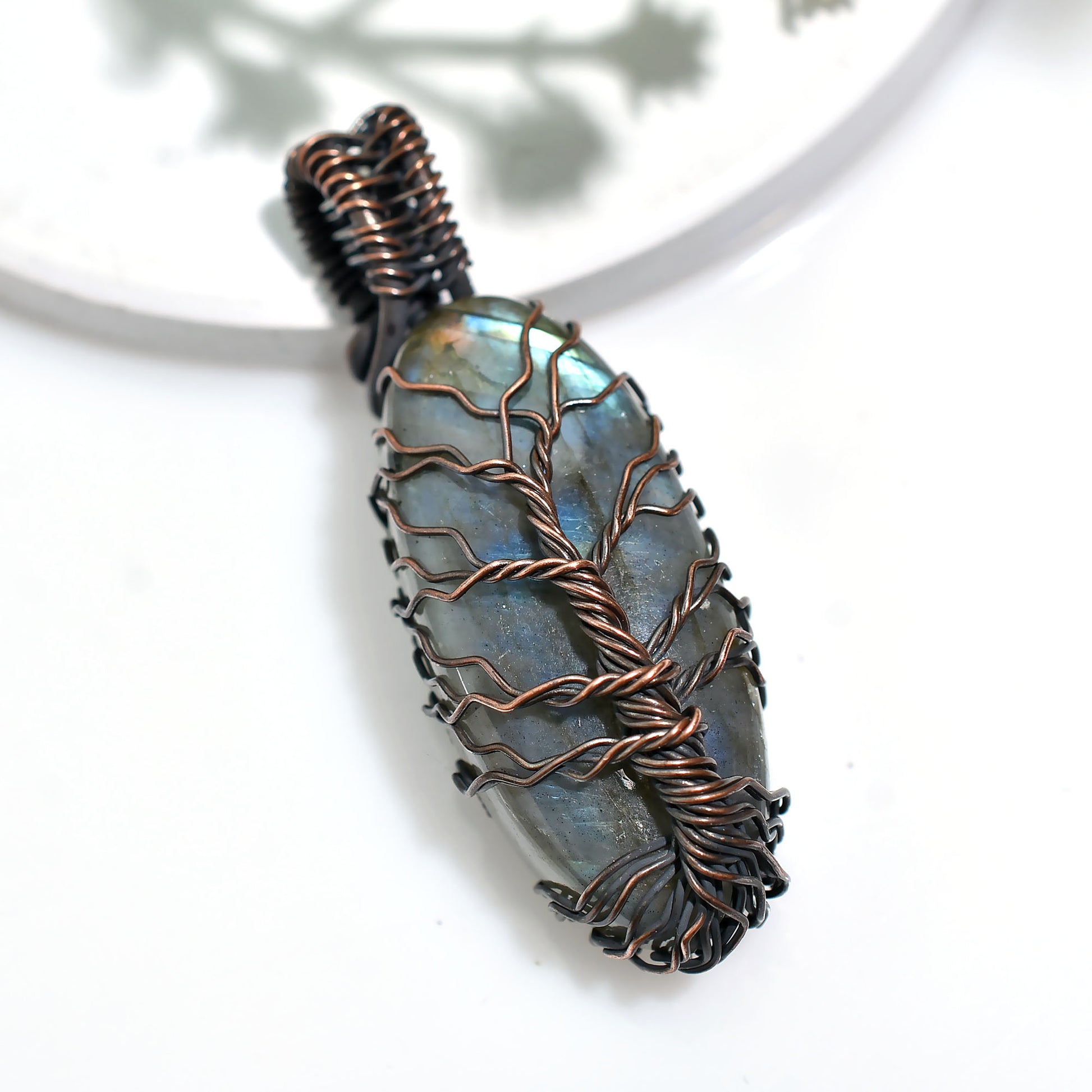 Spiritual Labradorite Gemstone Pendant – Wholesale Wire Wrapped Copper Necklace