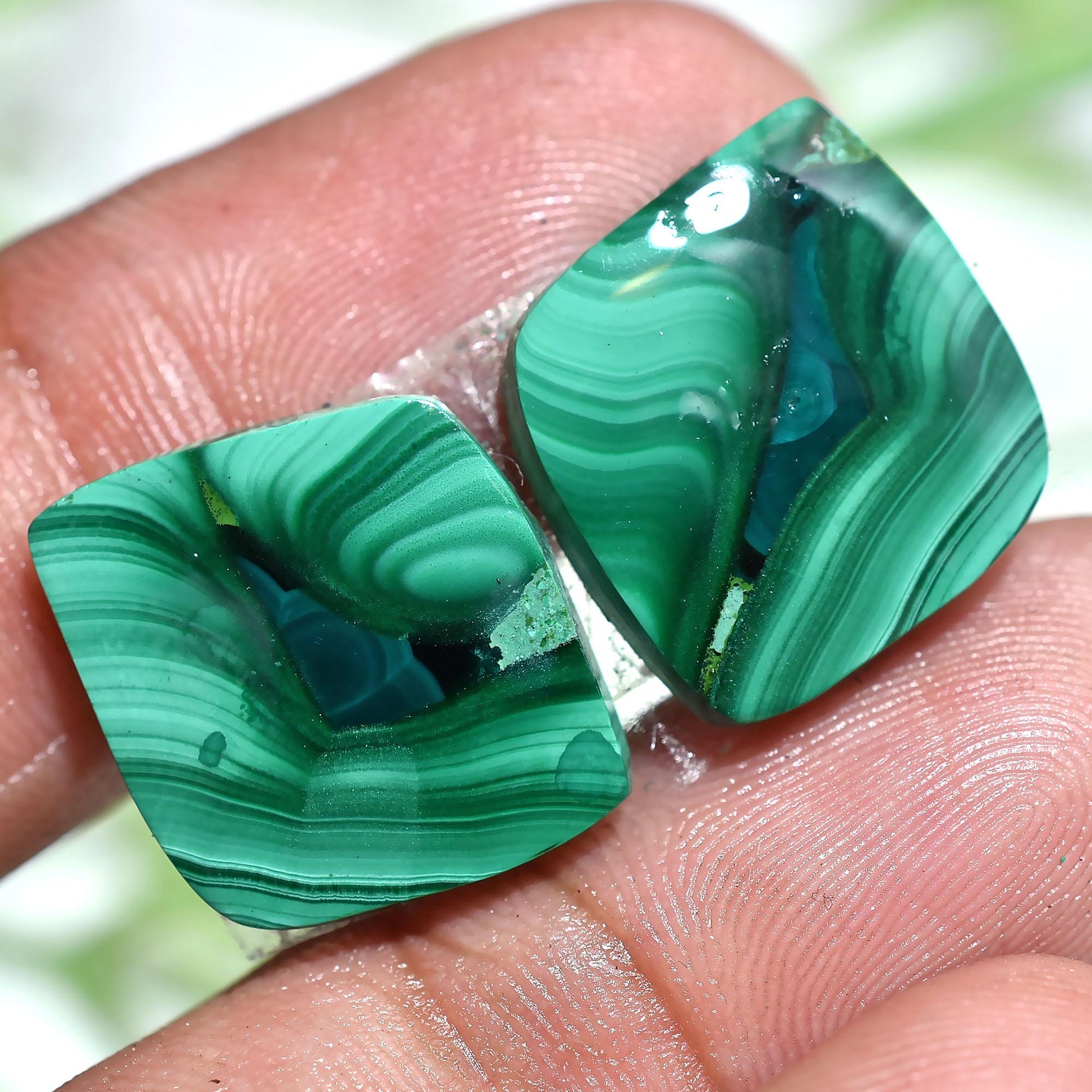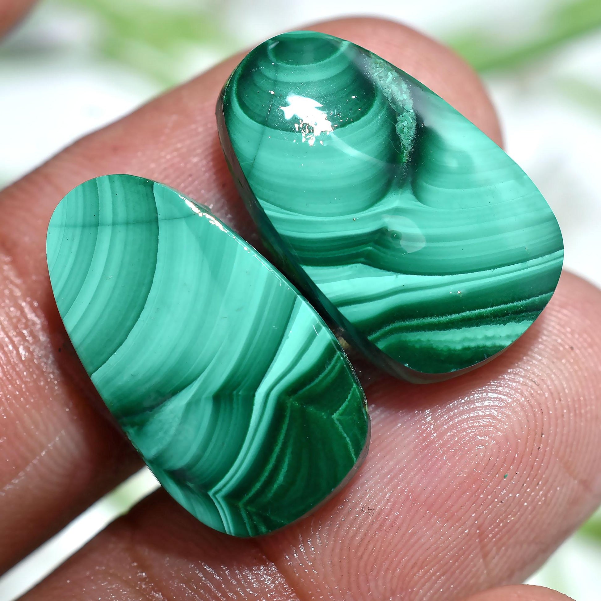 Stunning Malachite Cabochon Pair - Fancy Shaped Green Gemstones for Earring