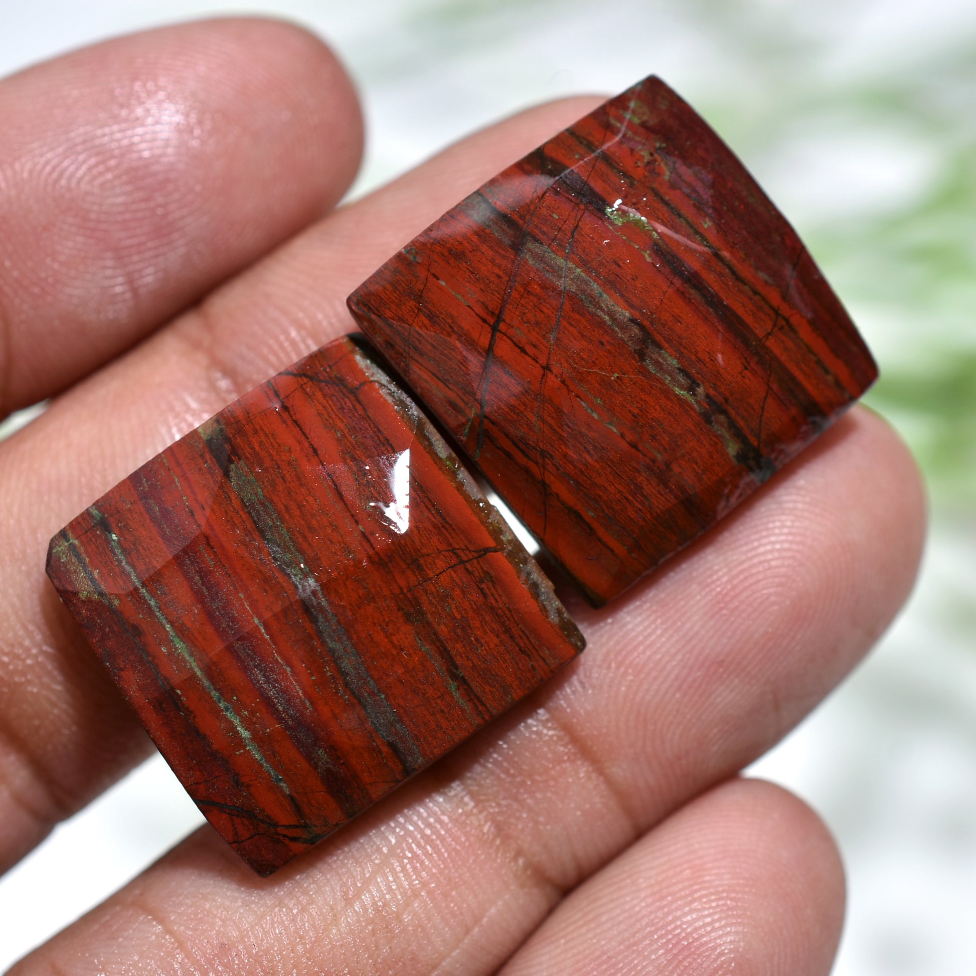 Stunning Red Jasper Gemstone Pair - Wholesale Faceted Rose Cut Stone Set for Jewelry Making"