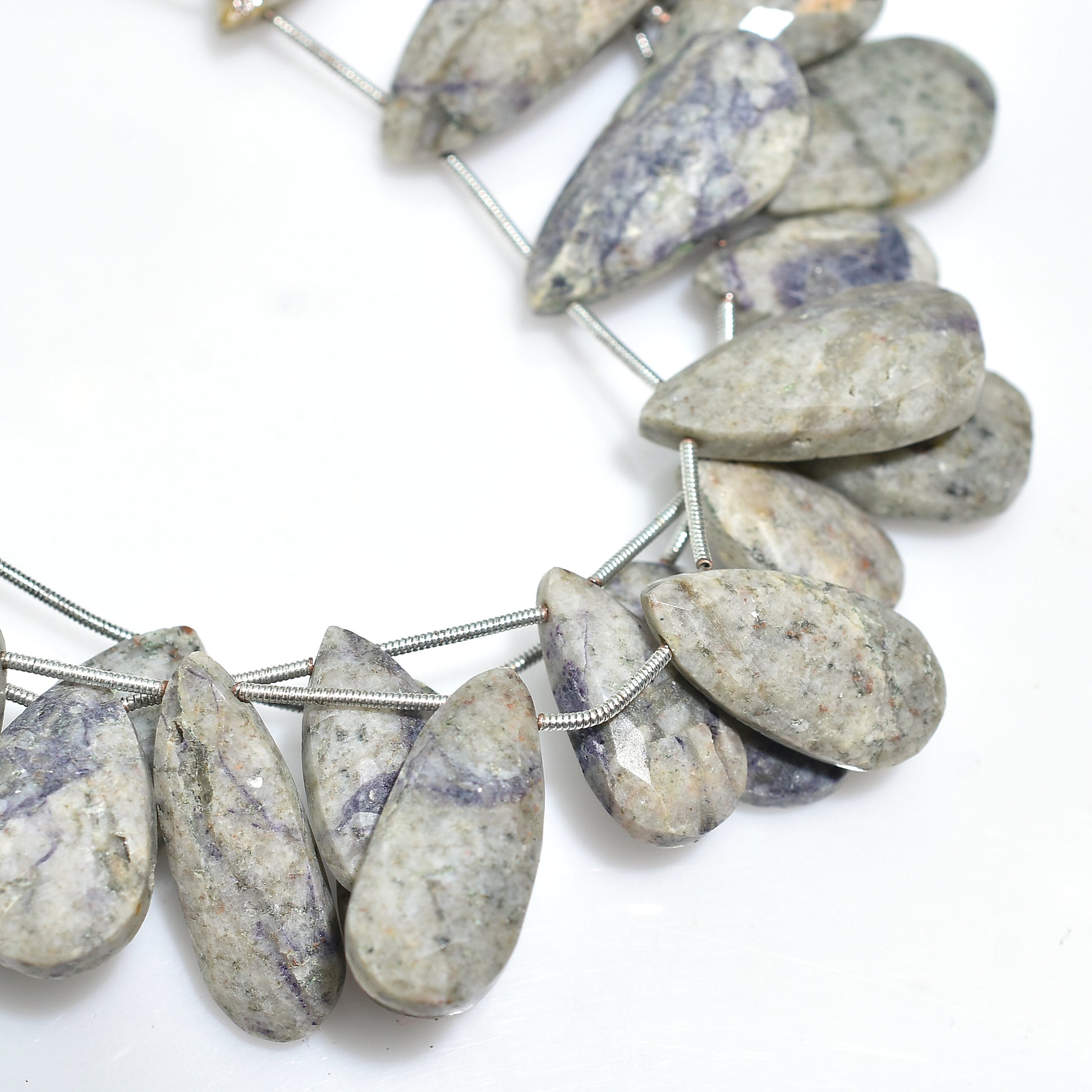 Shop this exquisite strand of Tiffany Stone faceted teardrop beads. Known for its dreamy purple and lavender swirls, these polished gemstones are ideal for high-end earrings, pendants, and custom jewelry creations.