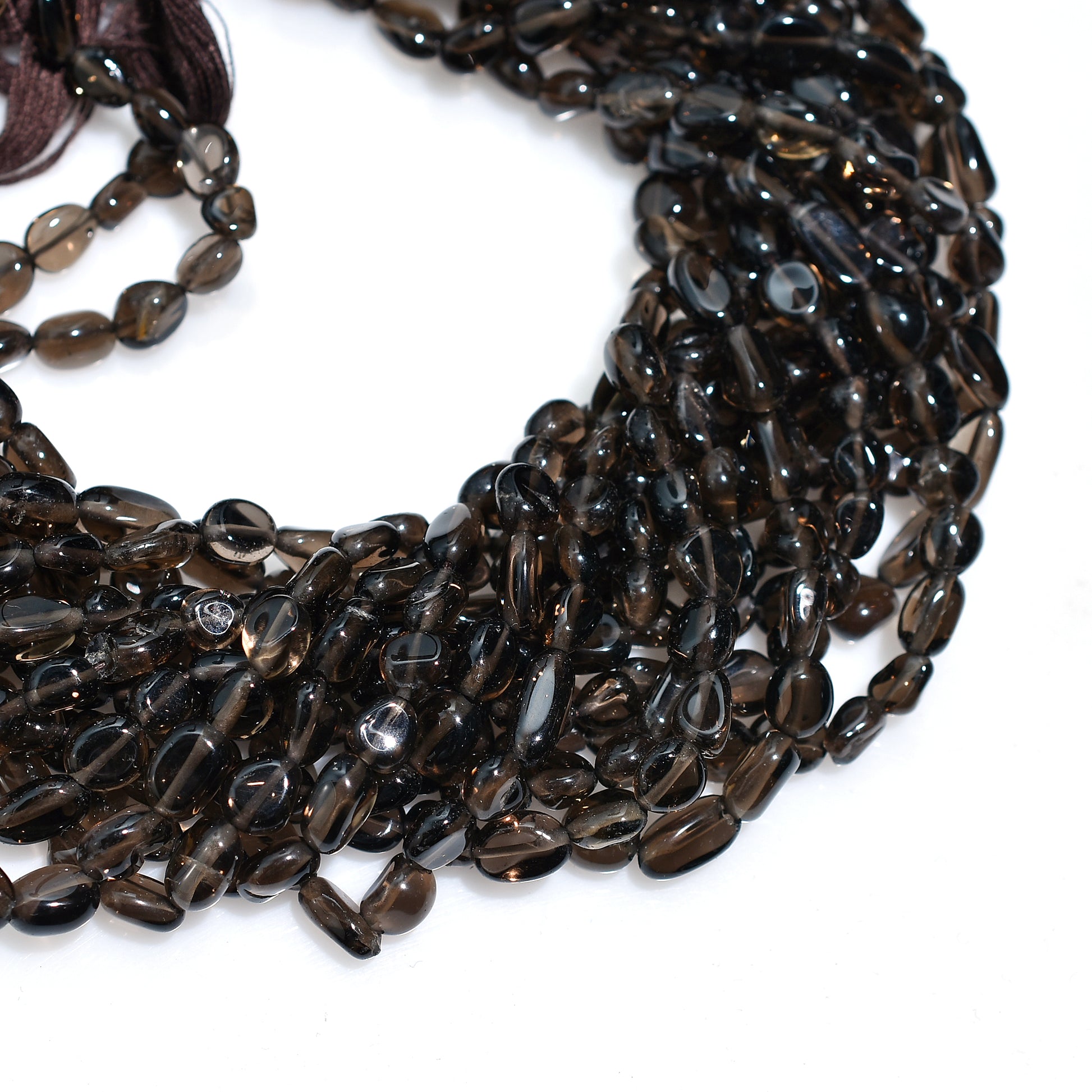 Shop natural Smoky Quartz smooth nugget beads in a 12-inch strand. Ideal for grounding, earthy jewelry designs. Perfect for wholesale buyers and craft lovers.